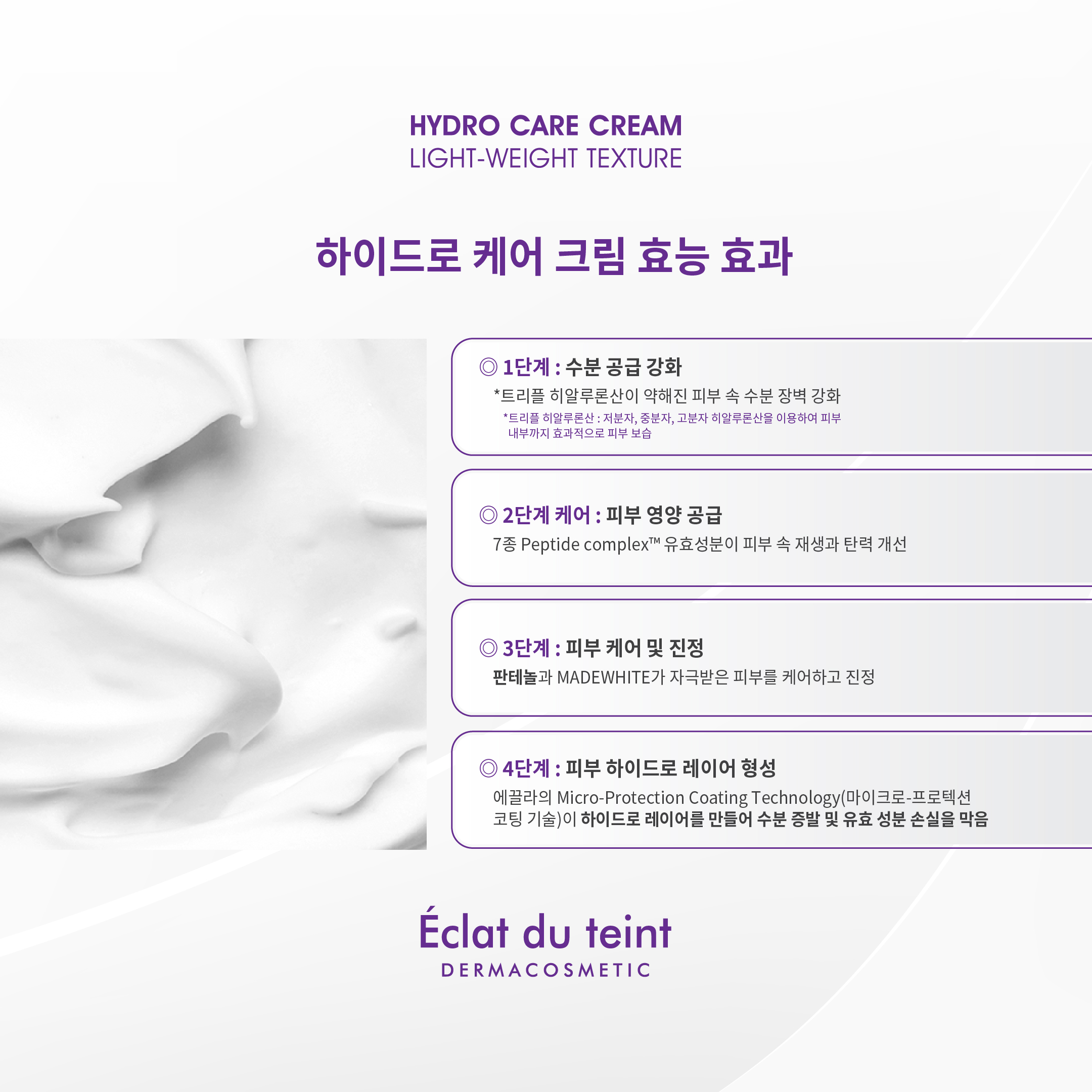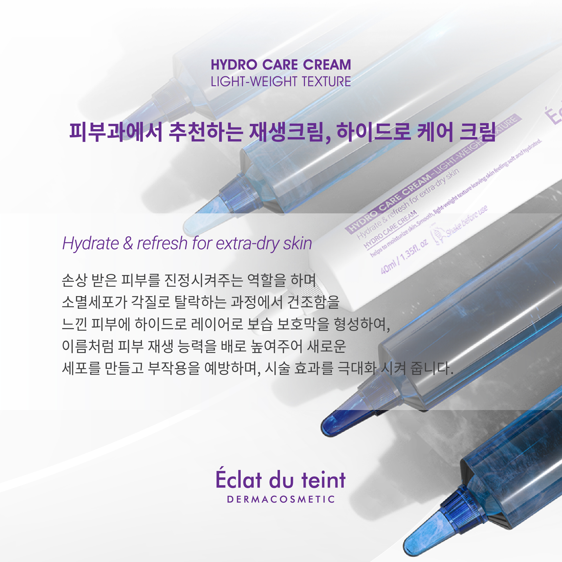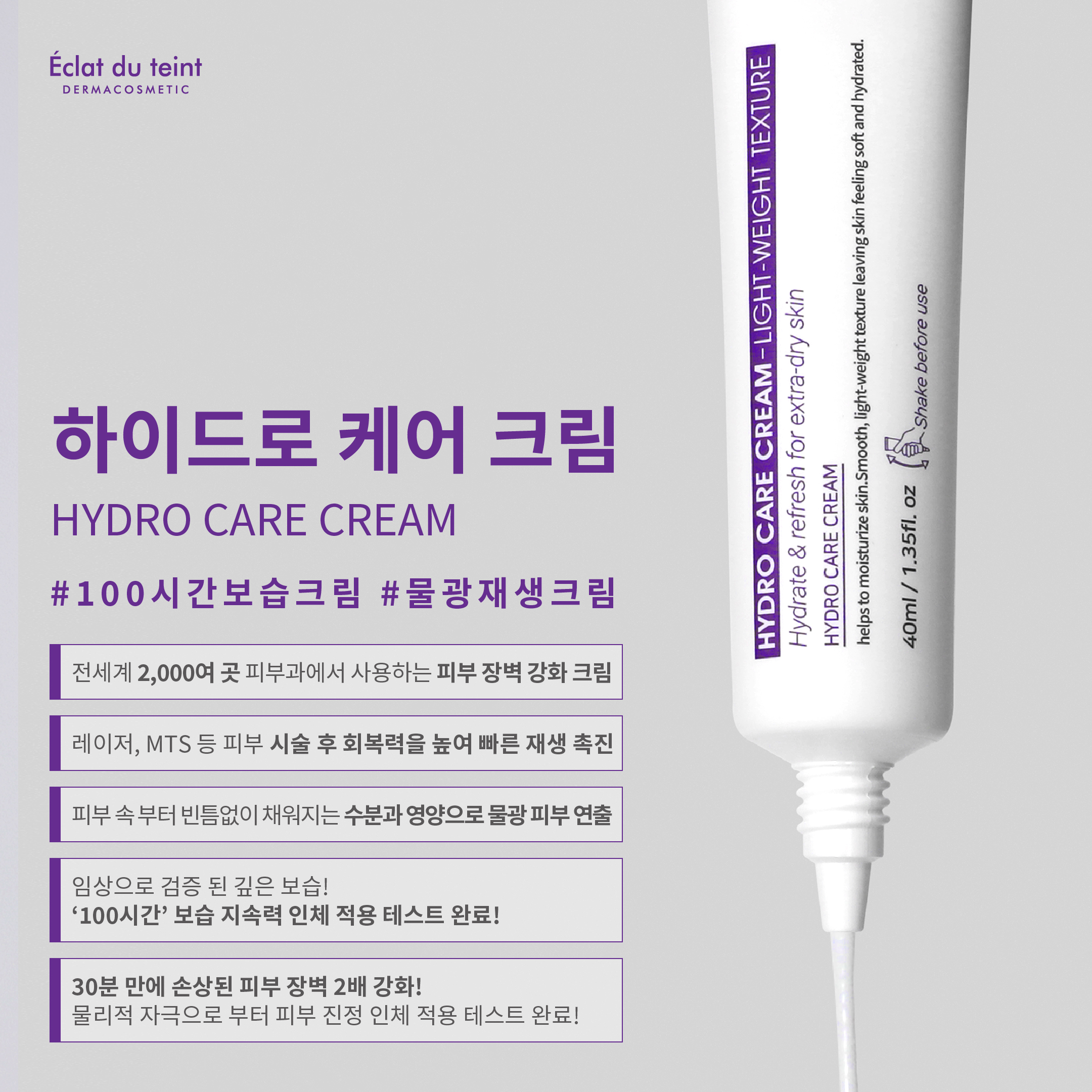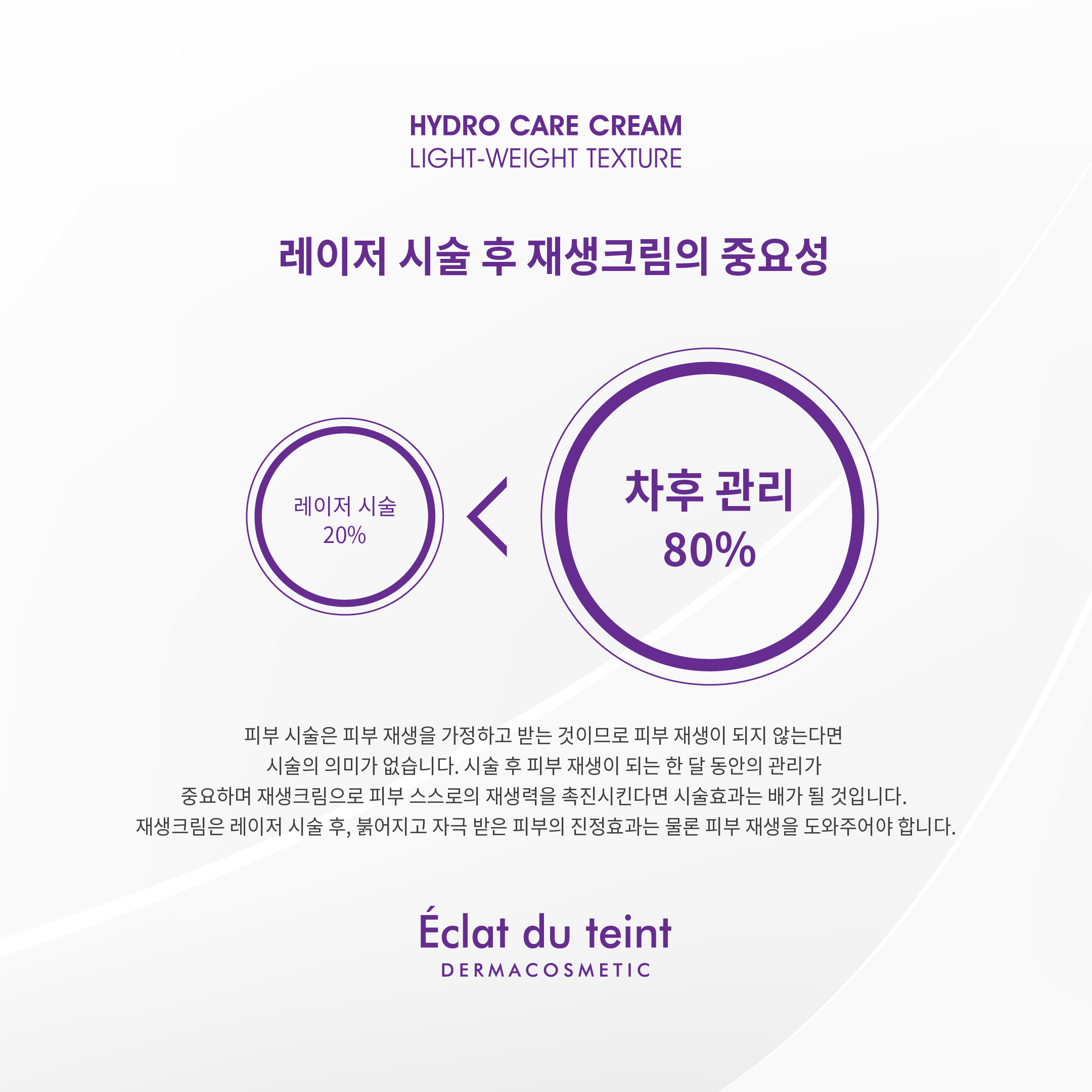 레이저 시술이나 기타 피부과 처치 후에는 피부의 재생과 회복이 매우 중요합니다. 에끌라뒤땅의 하이드로 케어크림은 이러한 과정을 효과적으로 지원합니다.