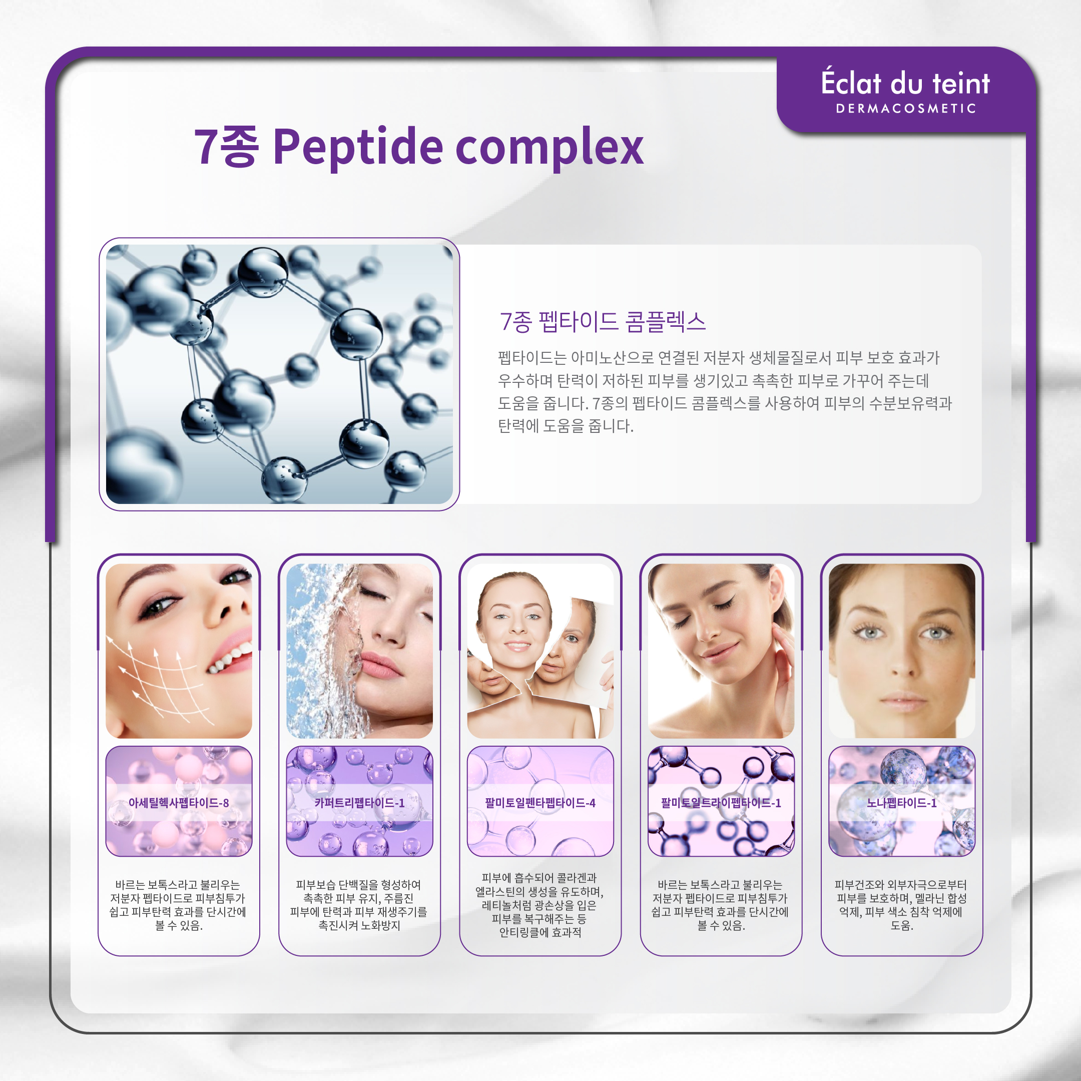 1. 7종의 펩타이드 콤플렉스: 피부 탄력과 수분 보유력 개선