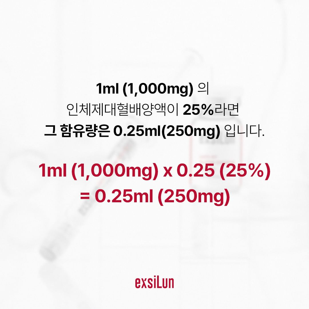 엑실런 인체제대혈세포배양액 함량 구하는 방법: 1,000mg x 0.25 = 250mg