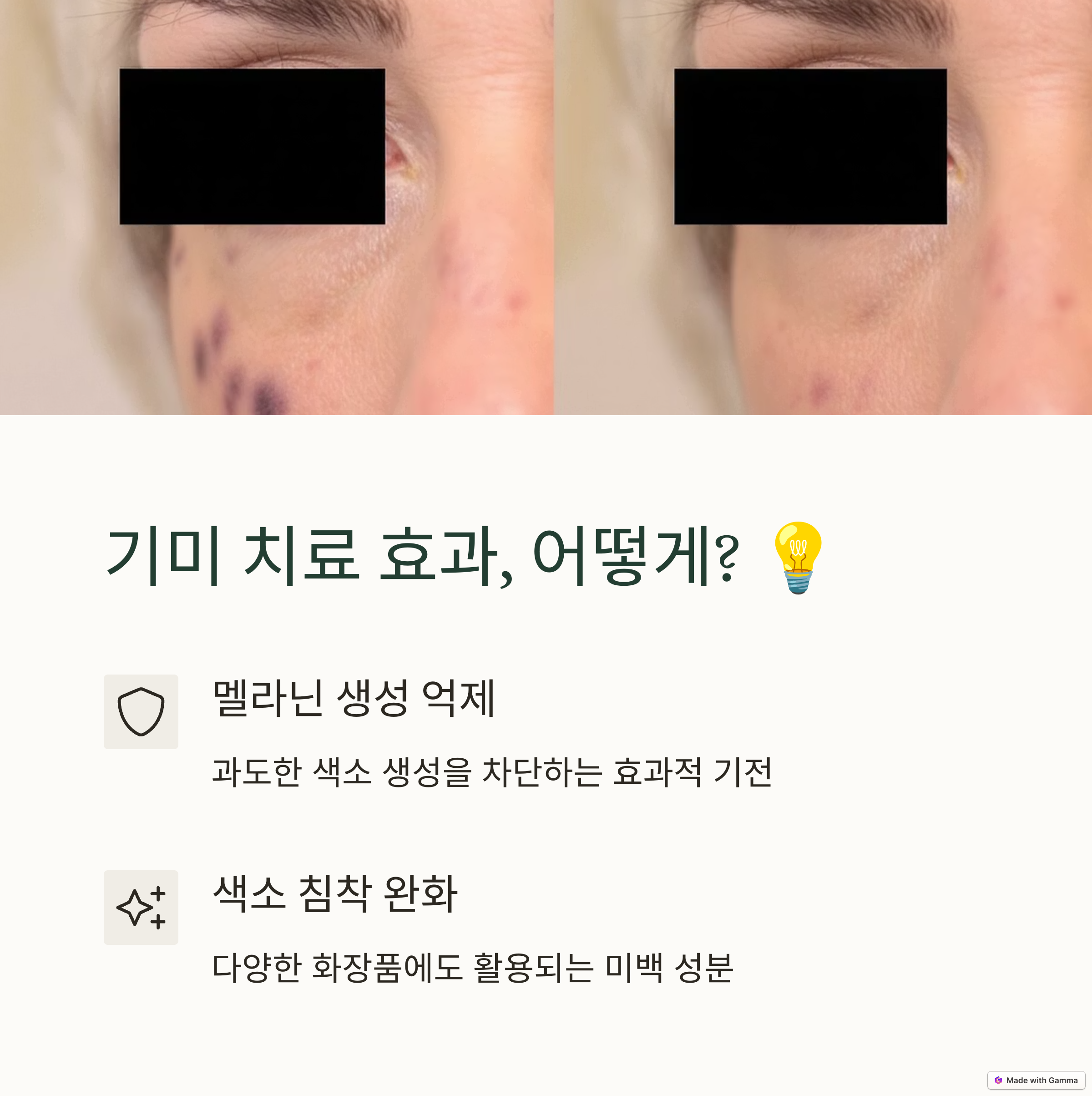 특히 기미와 같은 색소질환을 억제하기 위해 꾸준히 연구가 계속되고 있는 성분입니다.