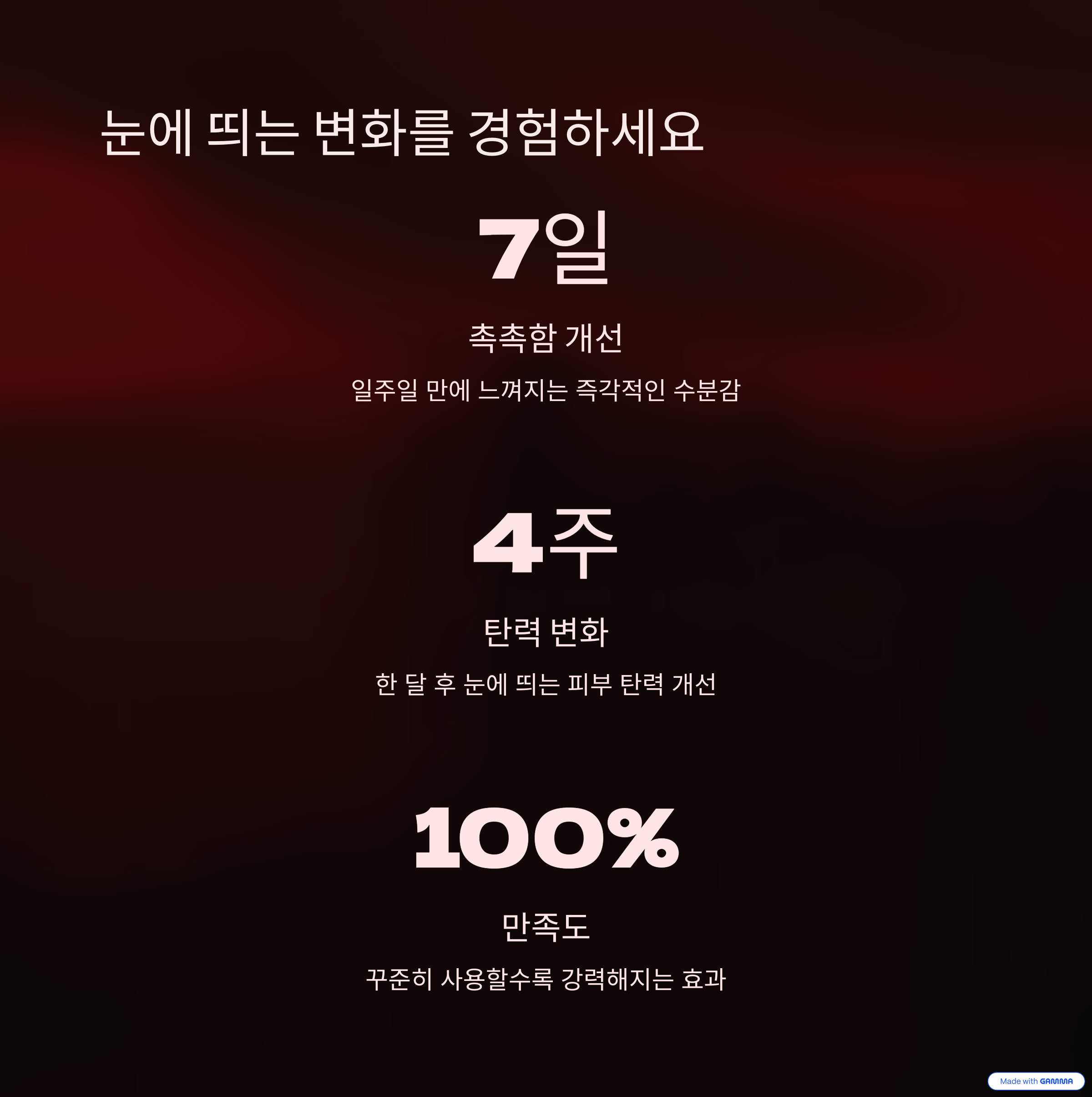 일주일 이내 촉촉함 개선, 4주 후 탄력 변화 경험 가능