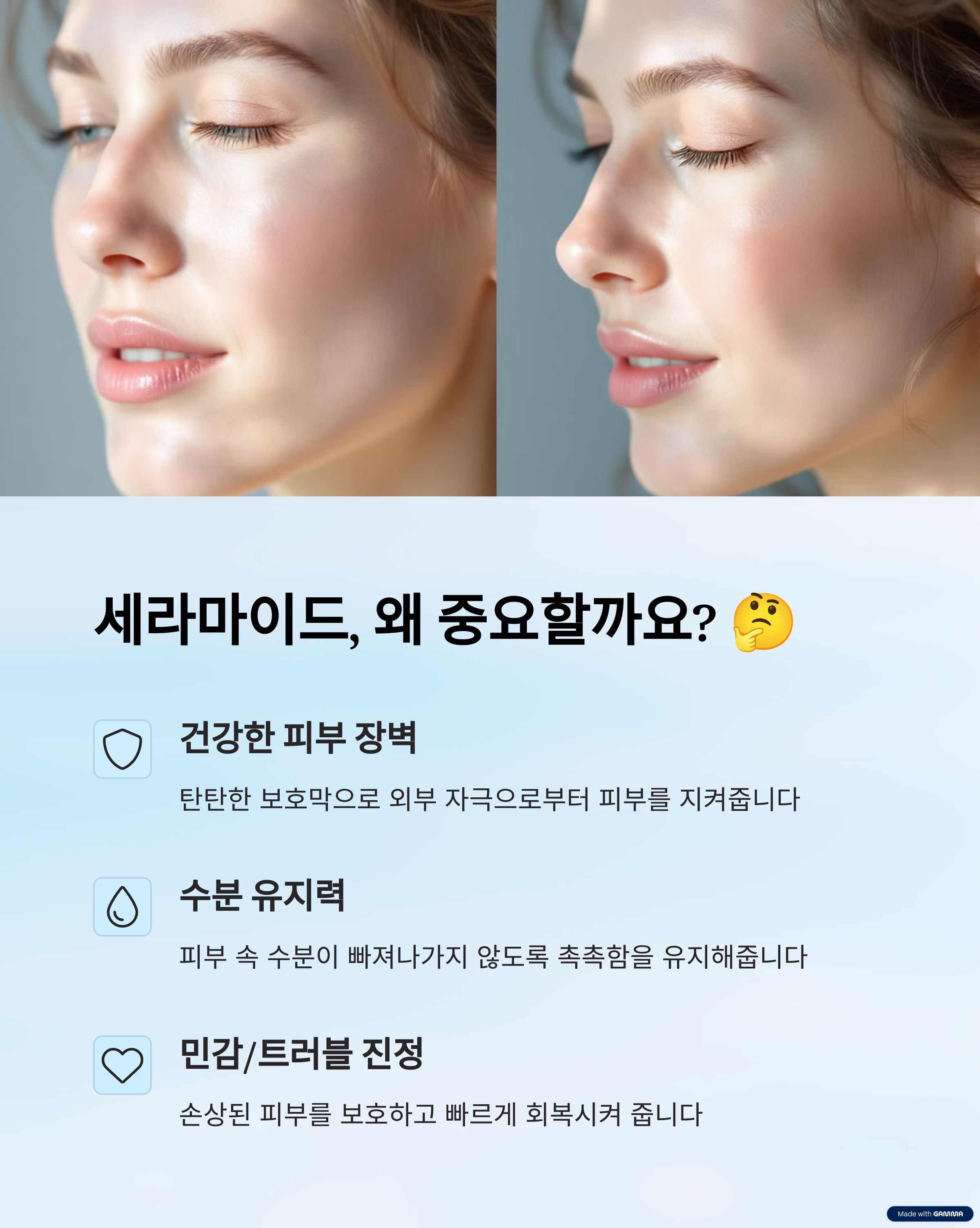 “피부를 지키는 첫 번째 방패, 세라마이드. 부족하면 쉽게 무너지고, 채워주면 놀랍게 회복됩니다.”