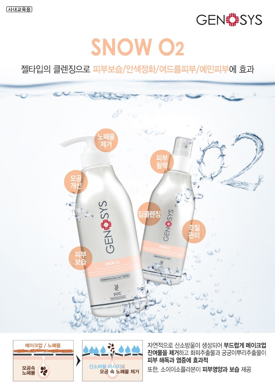 오늘은 아주 유명한 제품, 제노시스! 스노우 O2 제품을 소개해드리려고 합니다. 풍부한 산소 거품과 함께 모공 속 메이크업 잔여물까지 불순물을 관리하는 딥 클렌징