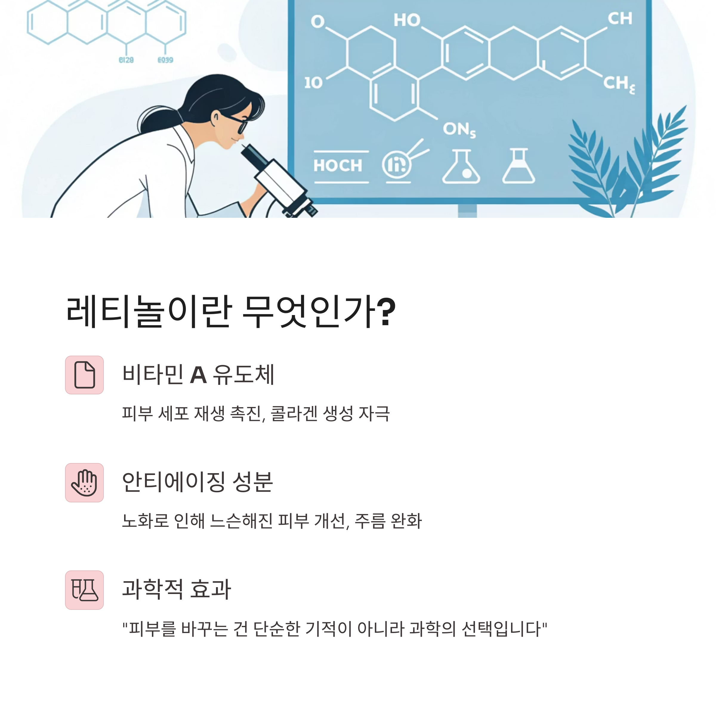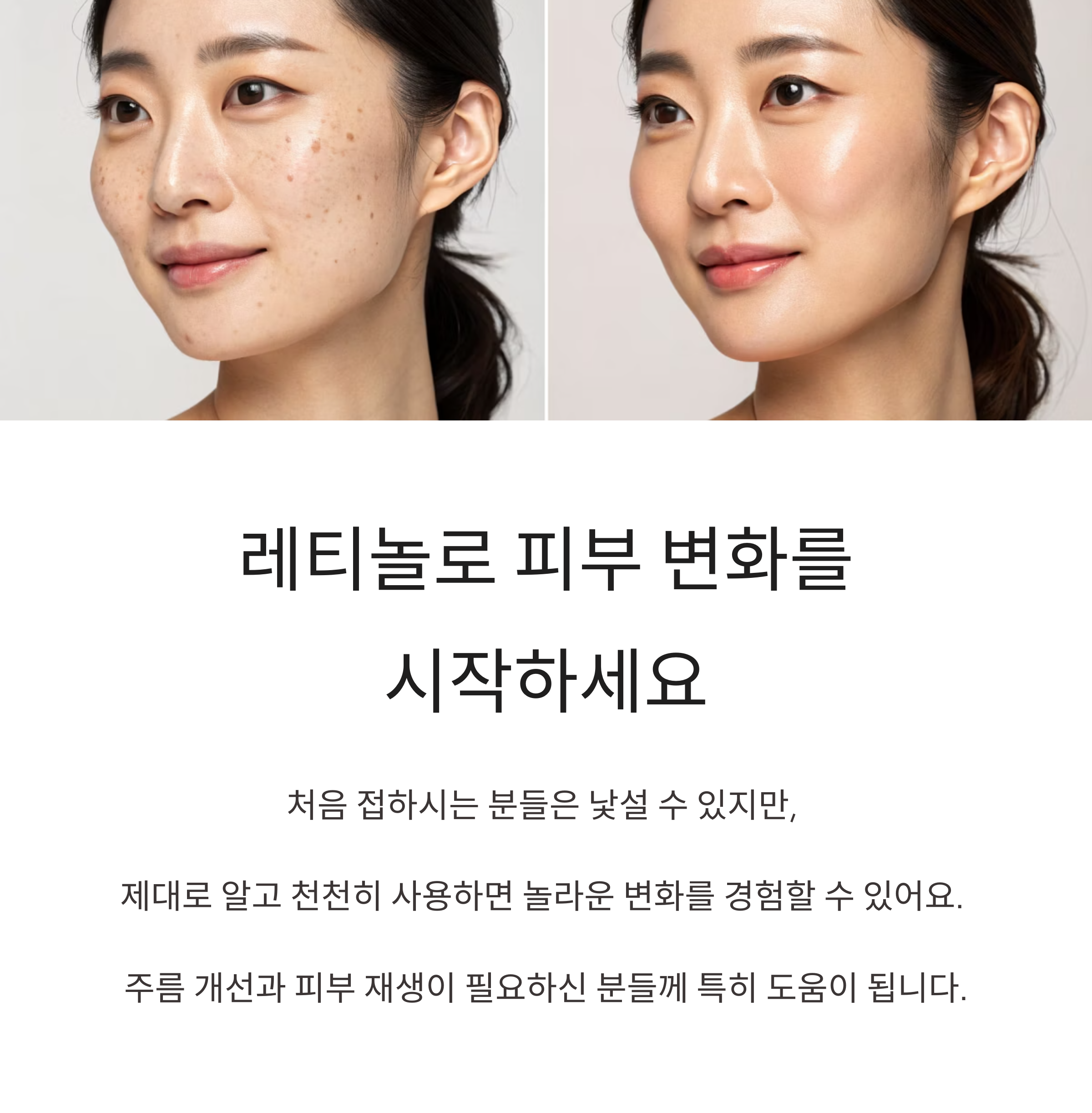 "피부를 바꾸는 건 단순한 기적이 아니라 과학의 선택입니다. 레티놀, 그 첫걸음을 시작해보세요."