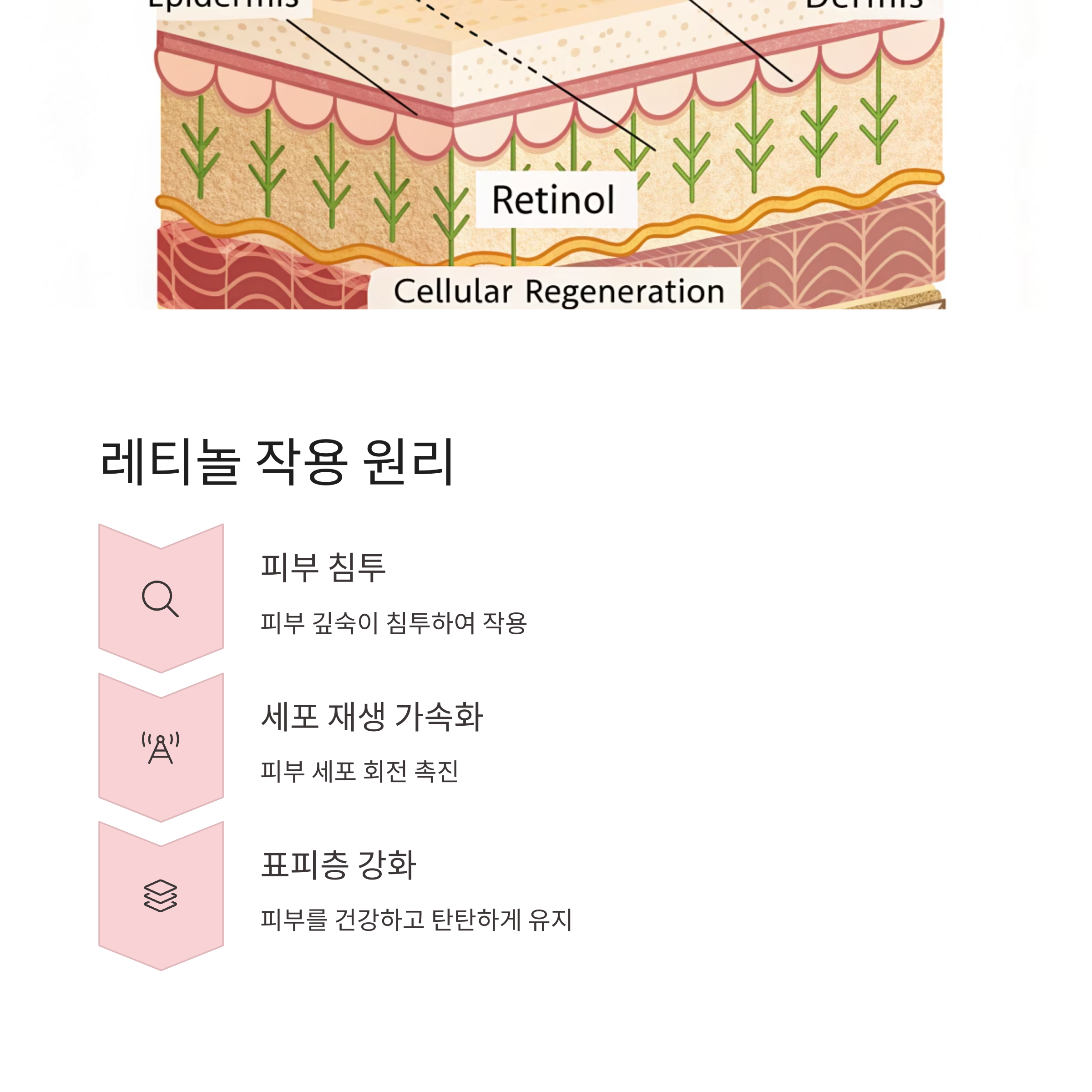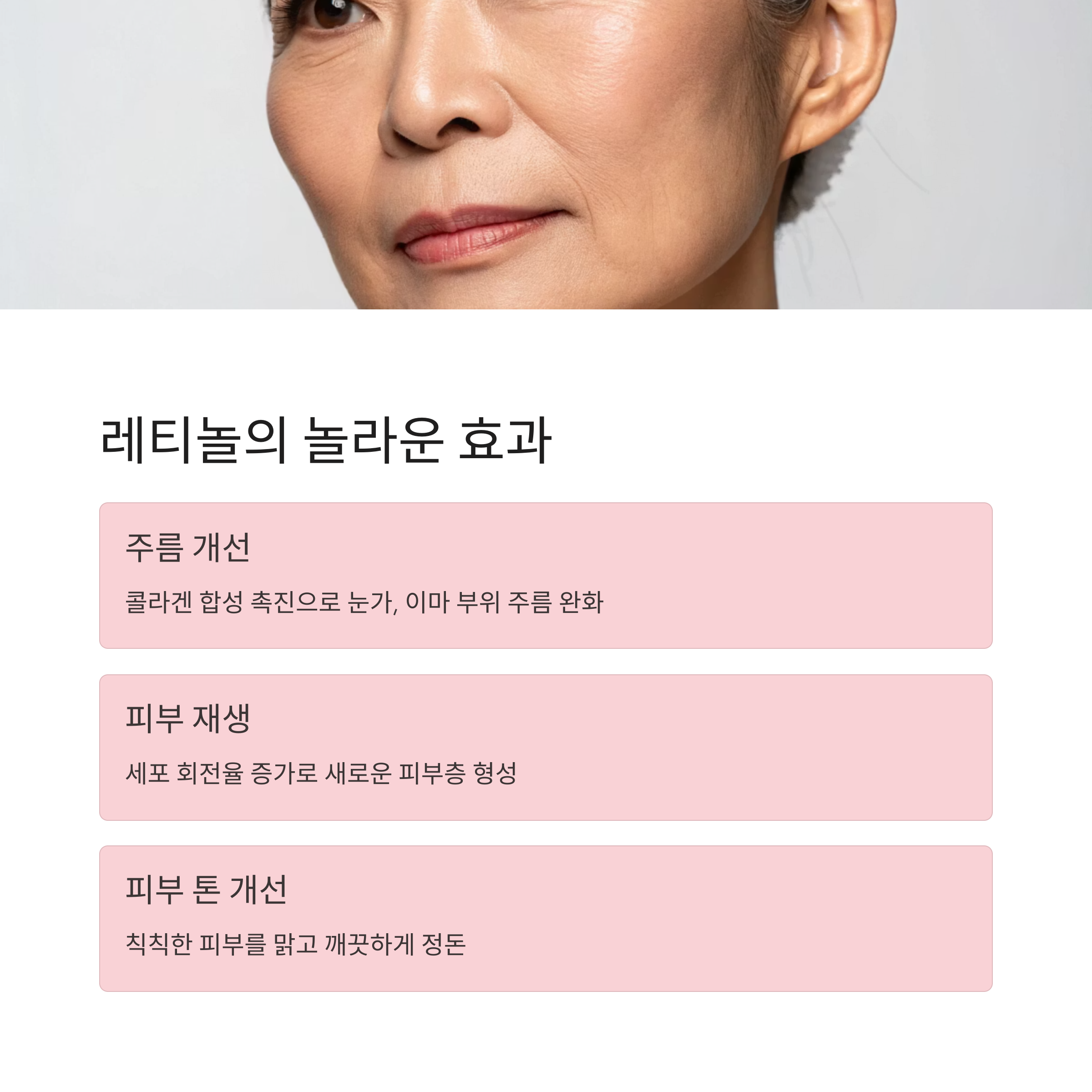 | 피부 재생 | 세포 회전율 증가로 새 피부층 형성 | 톤 개선 효과 |