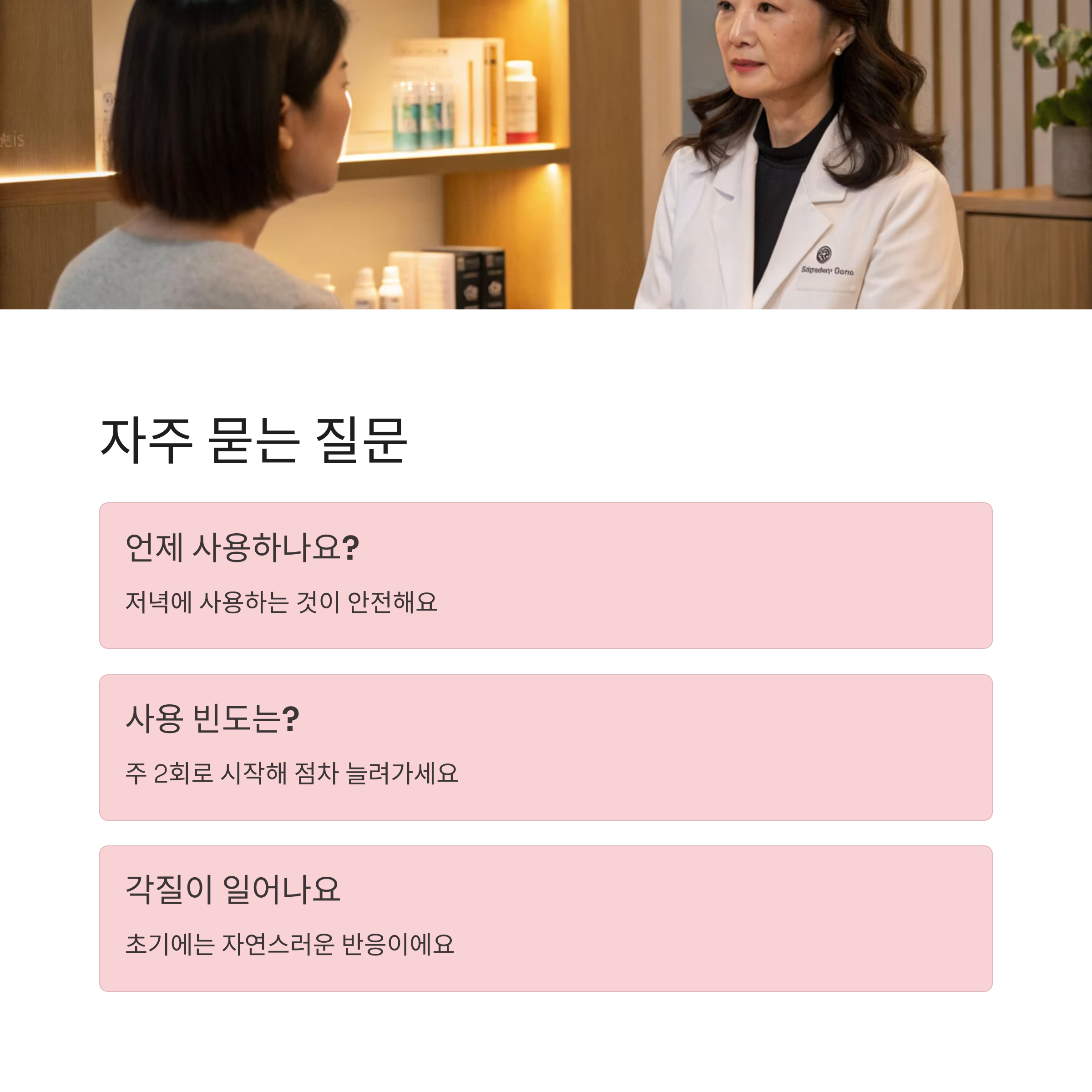 | 사용 주의 | 민감성 피부는 저자극 제품으로 시작 | 피부 테스트 권장 |
