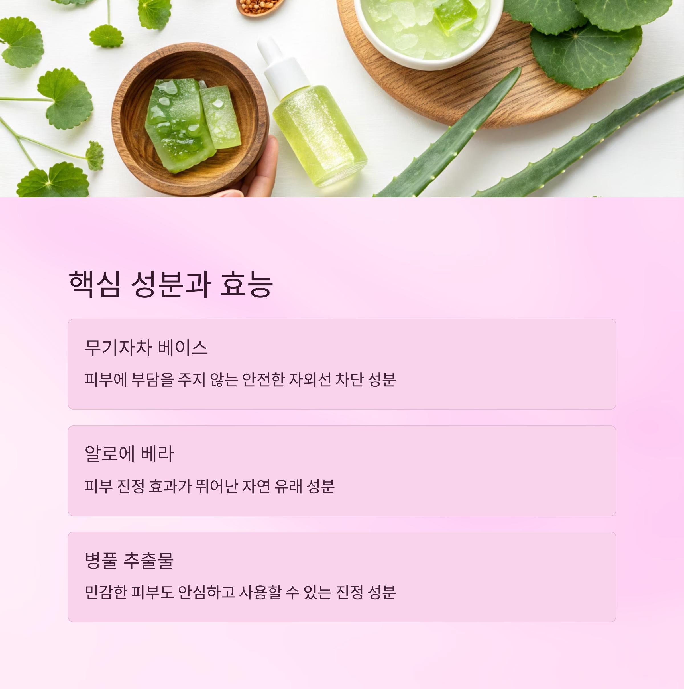 알로에 베라, 병풀 추출물 등 진정 효과가 있는 자연 성분을 함유하고 있습니다