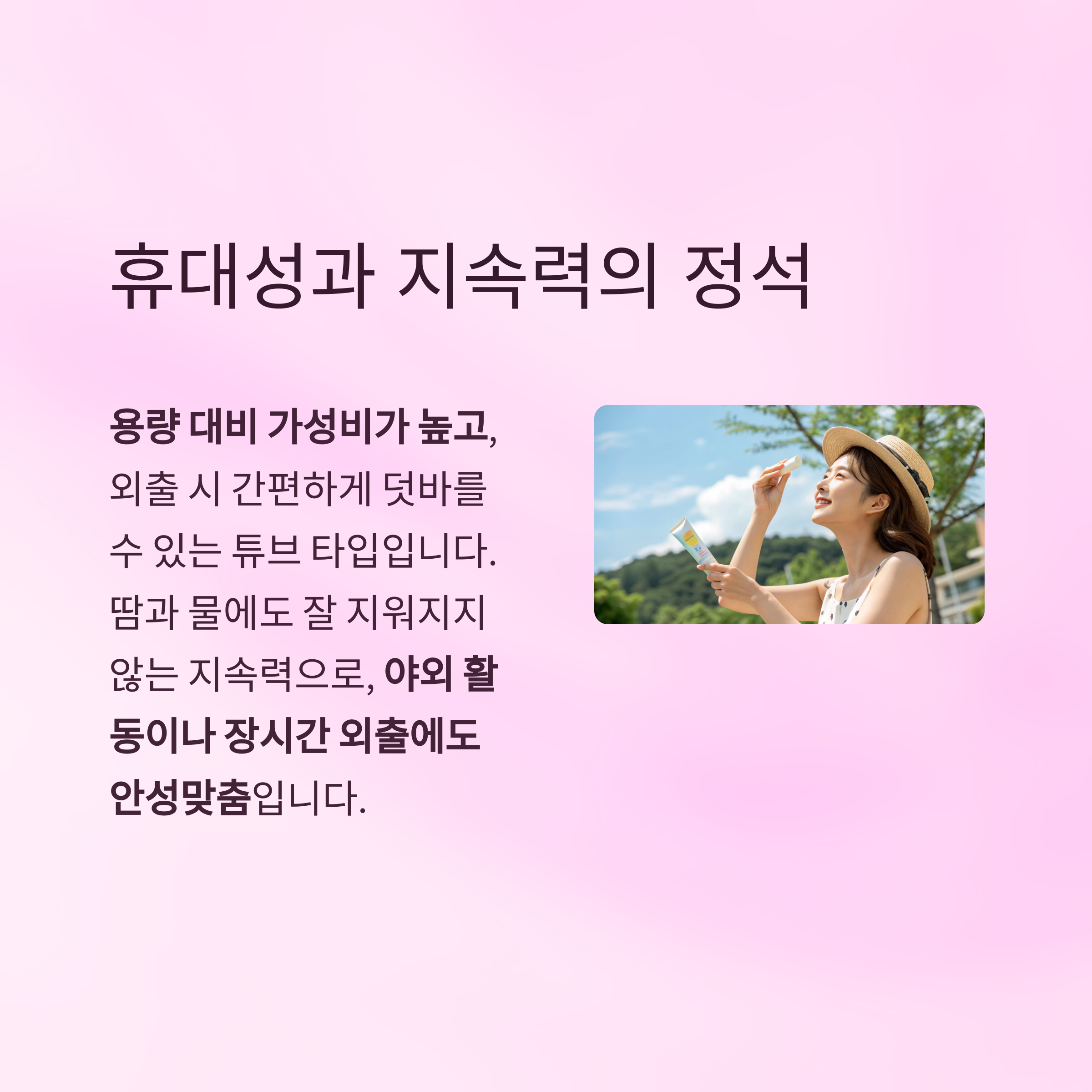 용량 대비 가성비가 높고, 외출 시 간편하게 덧바를 수 있는 튜브 타입입니다