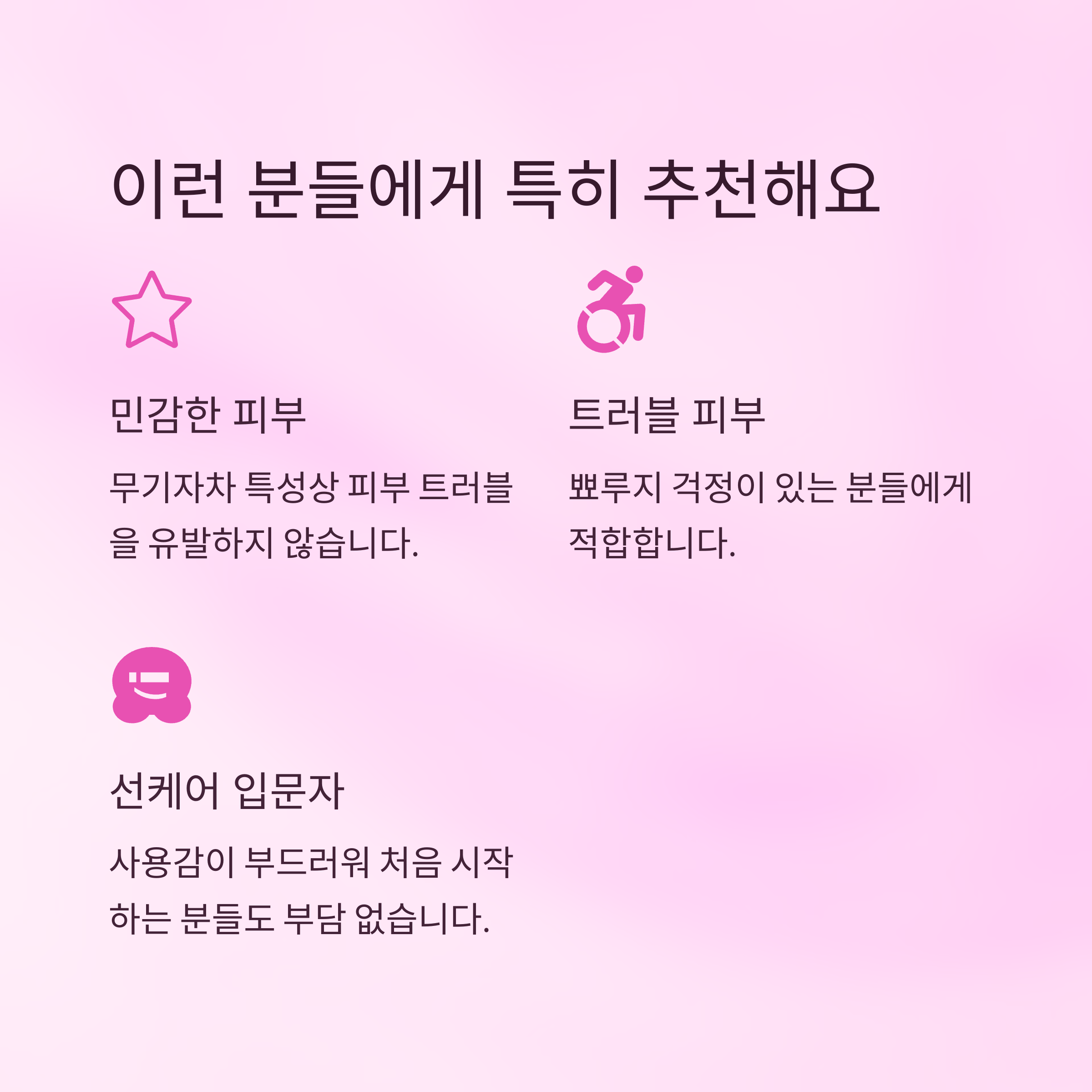 "자외선에 민감하거나 뾰루지 걱정이 있는 분들"