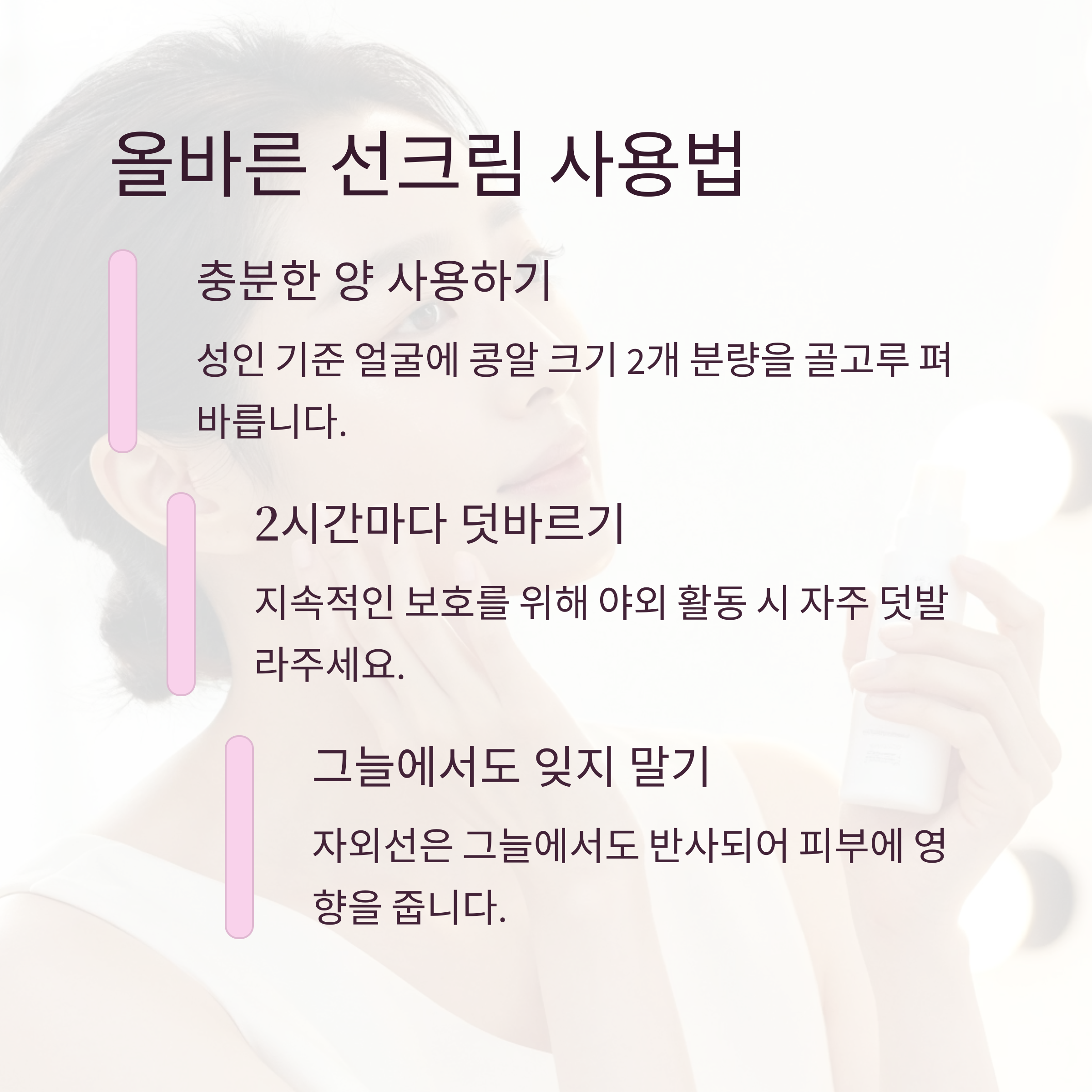 여름철 자외선은 피부 노화의 주범이며, 장시간 노출 시 기미나 잡티의 원인이 됩니다