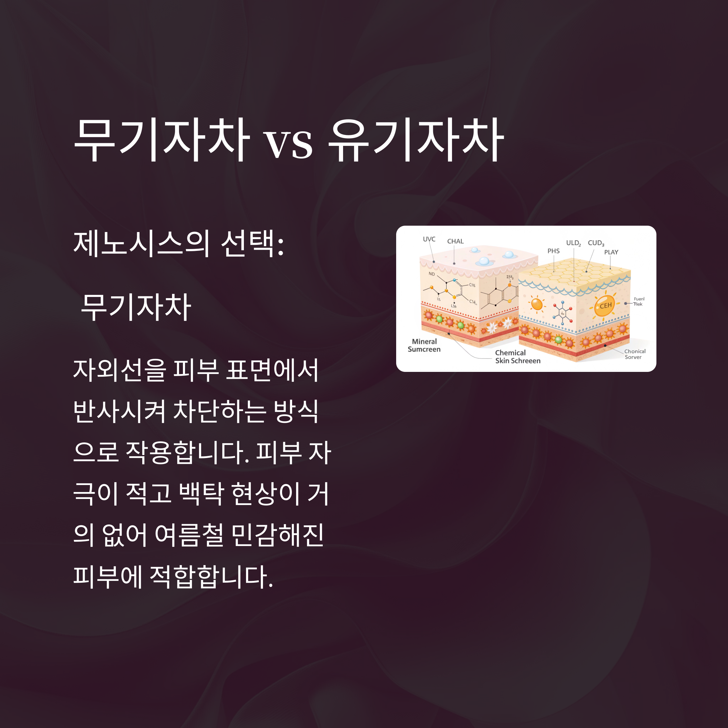 제노시스 선크림은 피부에 부담을 주지 않는 무기자차 베이스를 사용하며