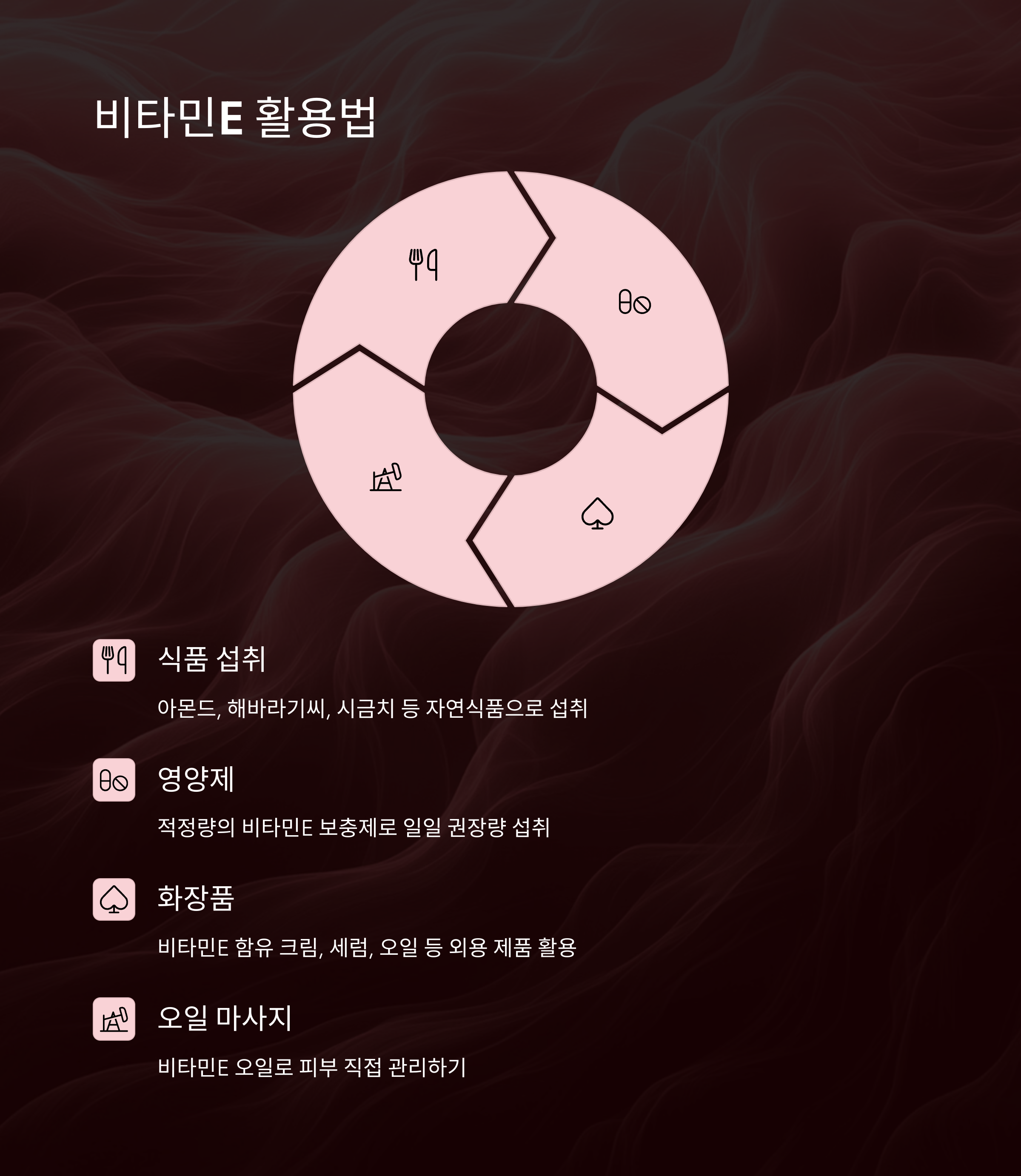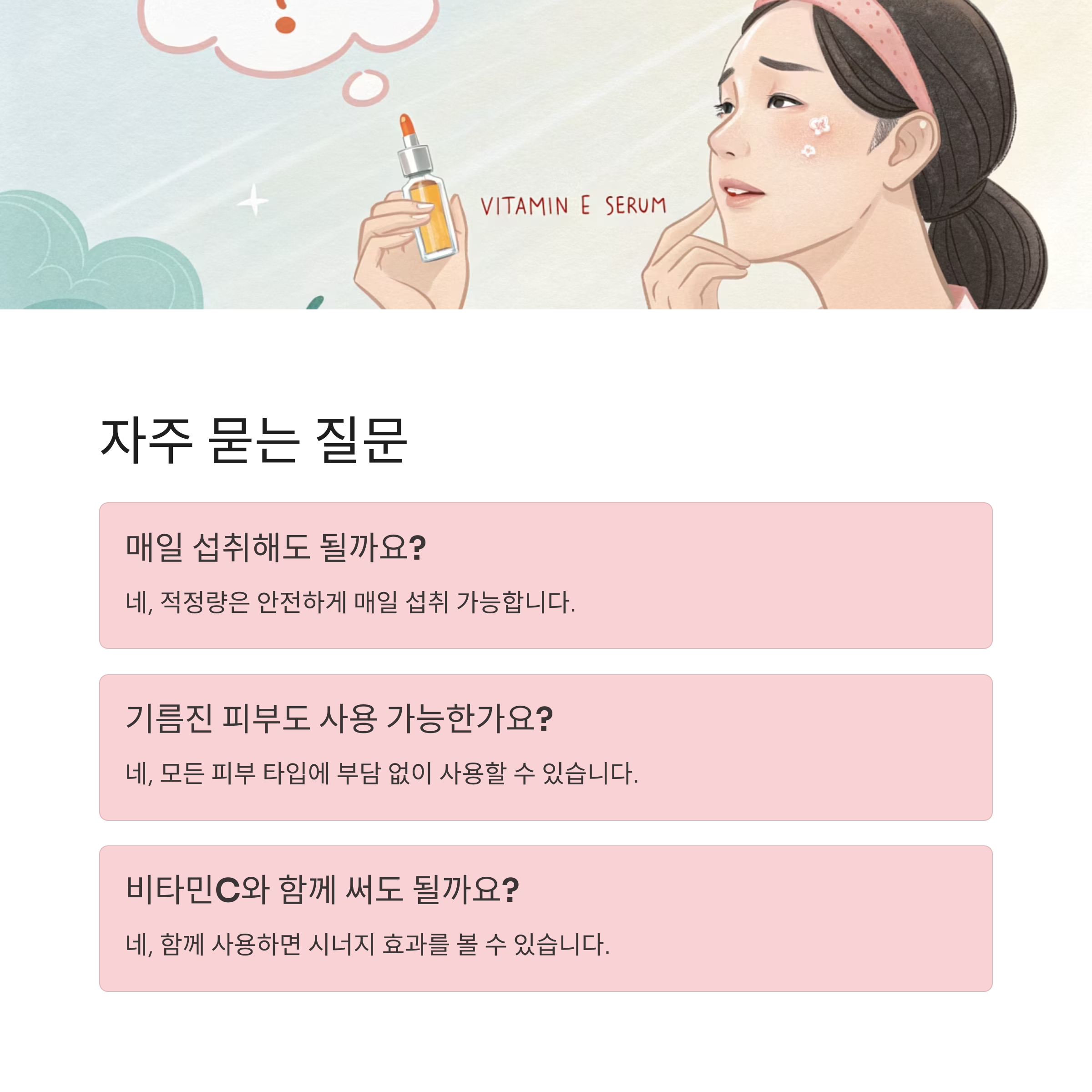 "비타민E는 매일 쌓이는 피부 스트레스를 진정시키는 데 큰 도움이 되는 필수 영양소입니다."