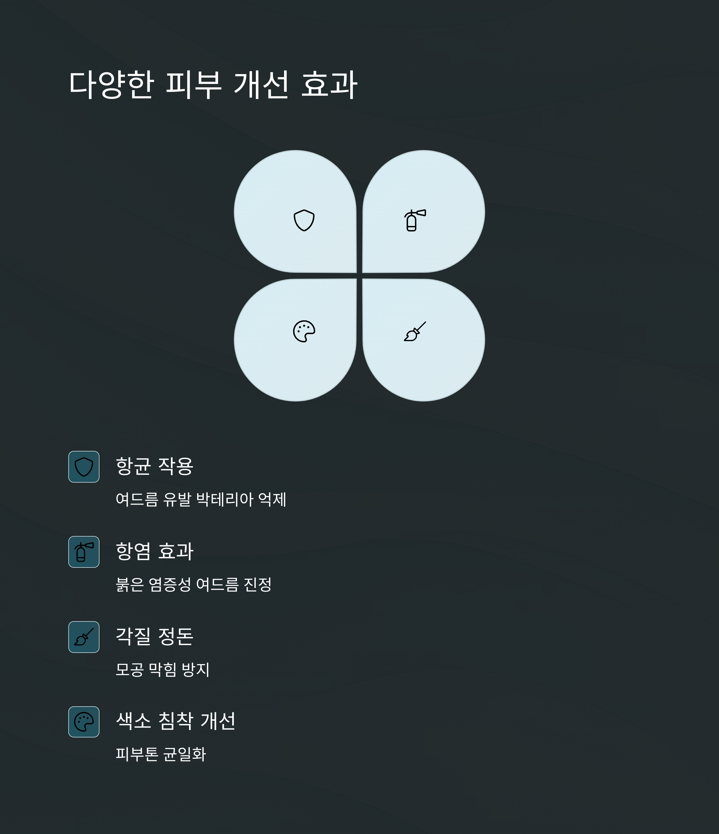 | 색소 침착 예방 | 여드름 자국 완화 | 피부톤 개선 |