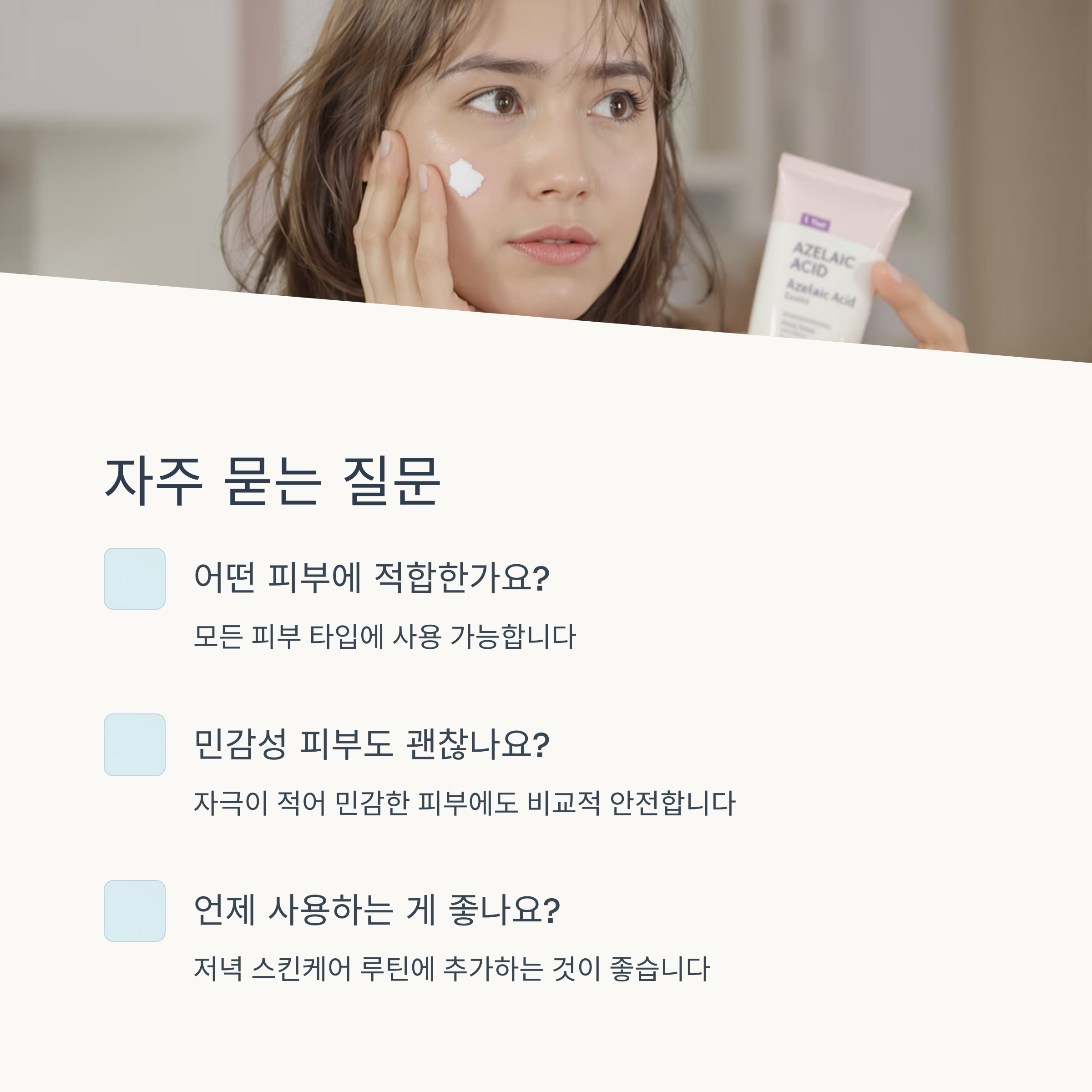 여러분의 건강한 피부를 위해 아젤라익산을 고려해보시는 것도 좋은 방법이 될 거예요.