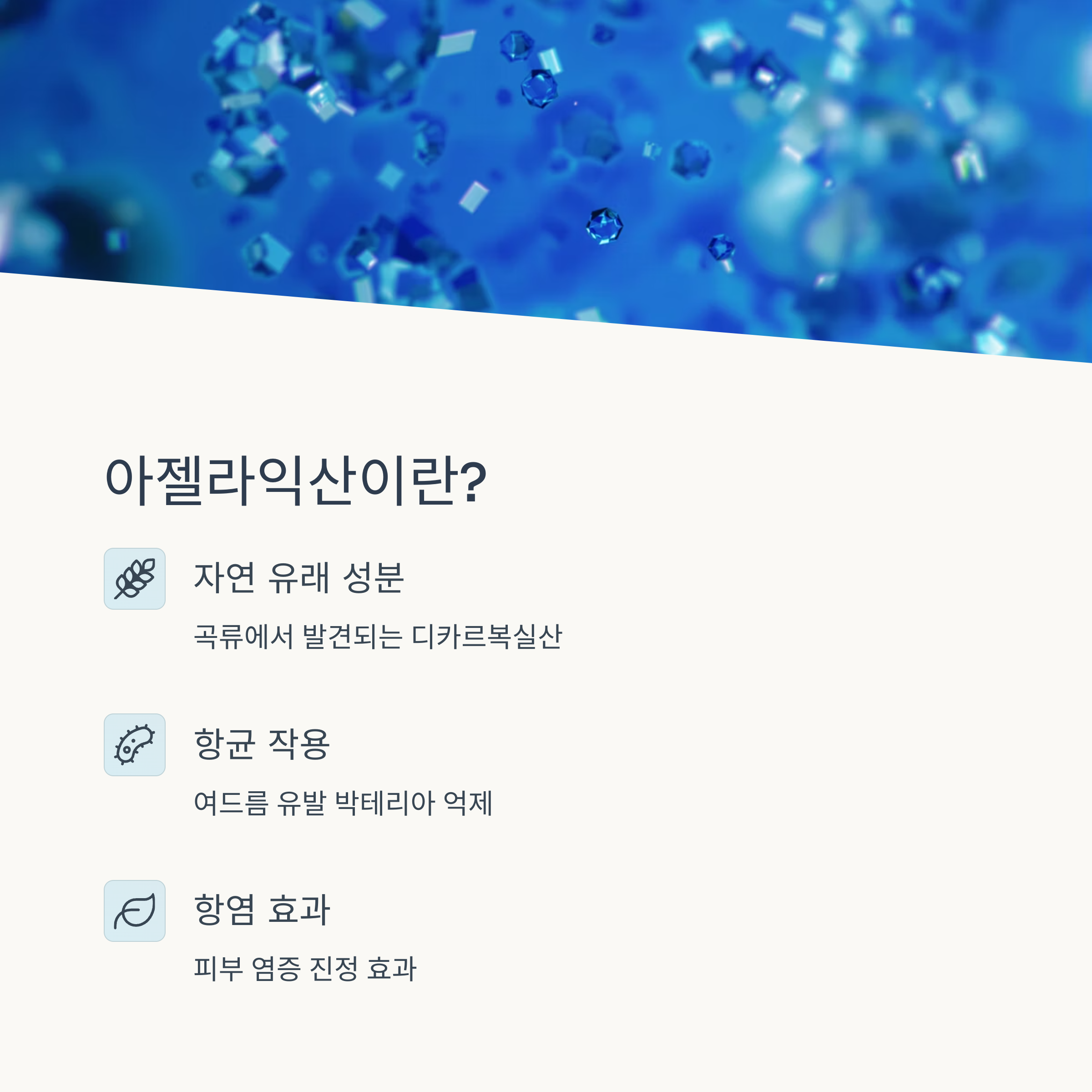 아젤라익산은 피부 속 세균을 억제하고 각질을 조절하는 데 도움을 줍니다.