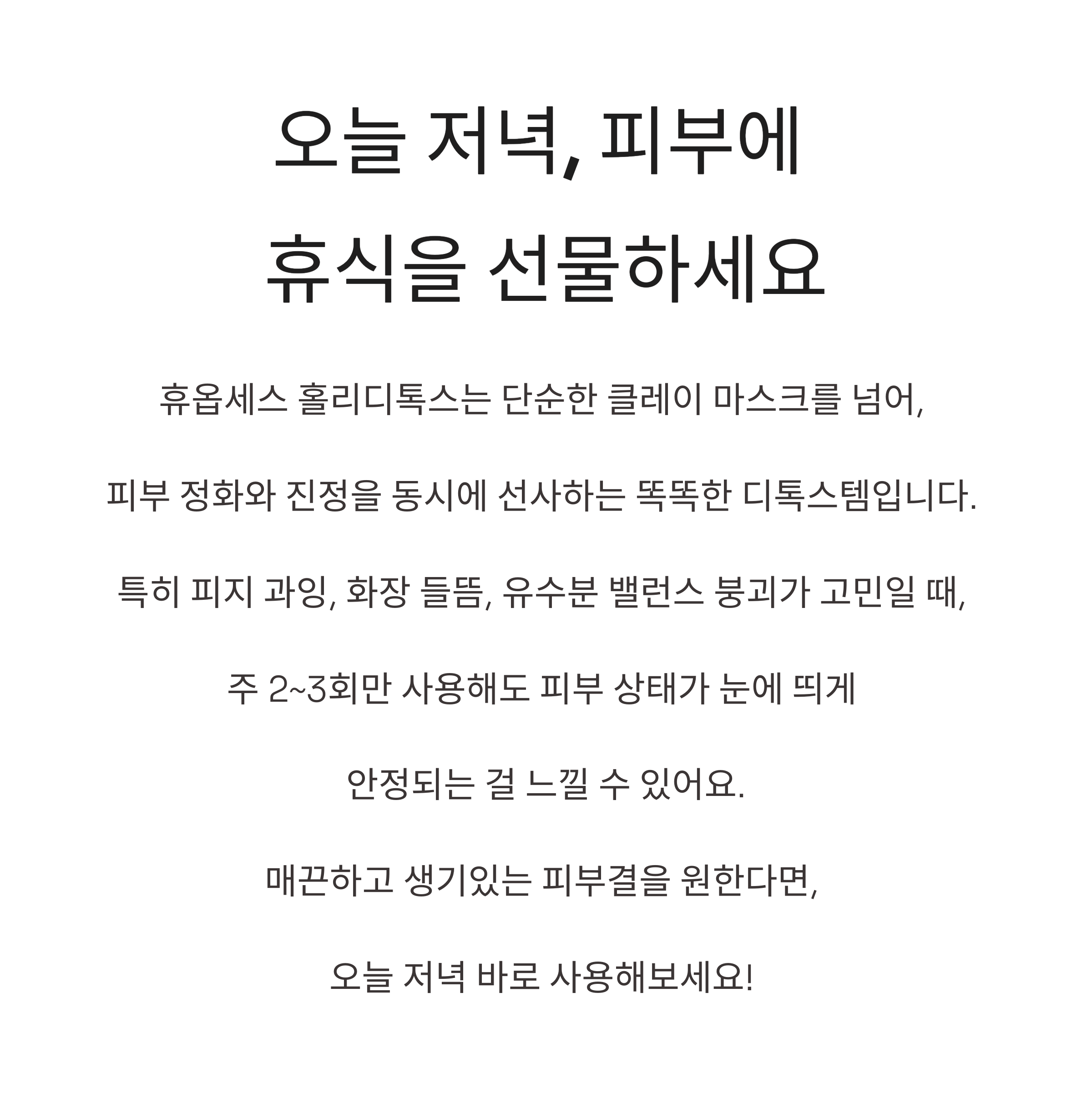 휴옵세스 홀리디톡스는 단순한 클레이 마스크를 넘어, 민감한 피부에도 부담 없이 사용할 수 있는 저자극 정화 마스크입니다.