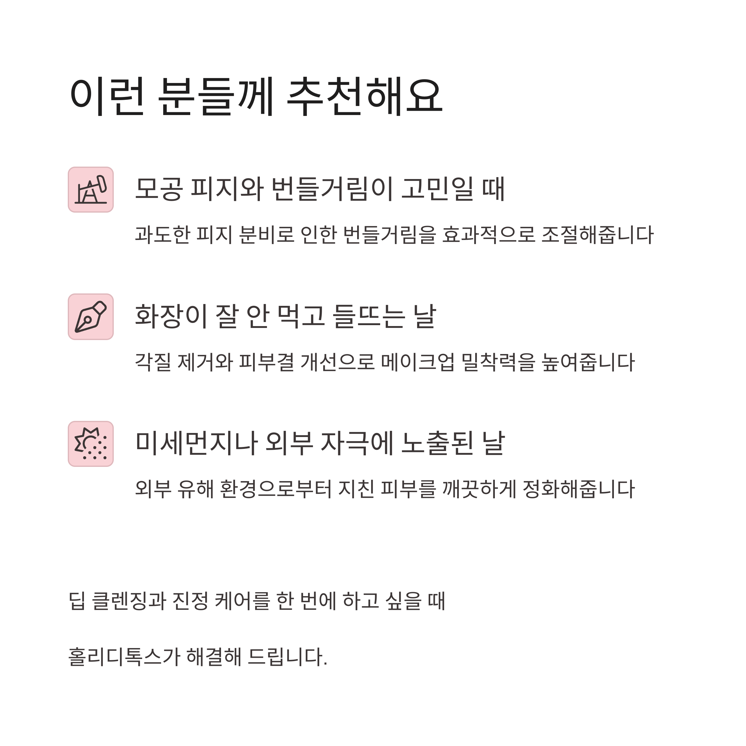 특히 피지 과잉, 화장 들뜸, 유수분 밸런스 붕괴가 고민일 때, 주 2~3회만 사용해도 피부 상태가 눈에 띄게 안정되는 걸 느낄 수 있어요.