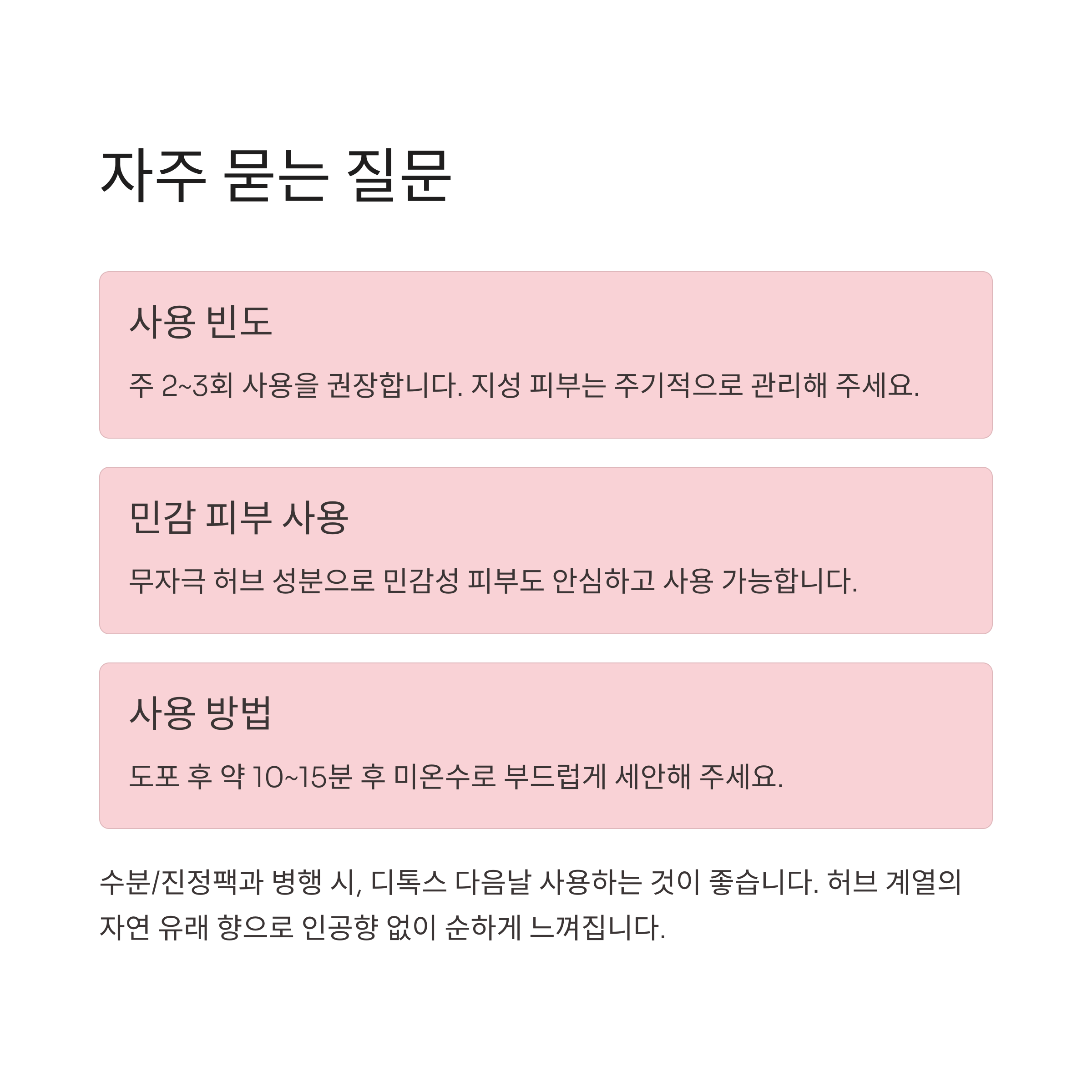 허브 계열의 자연 유래 향으로 인공향 없이 순하게 느껴져요.